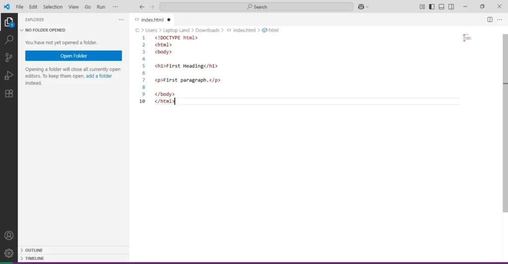 Then save this file with name of index and extension name as HTML, index.HTML